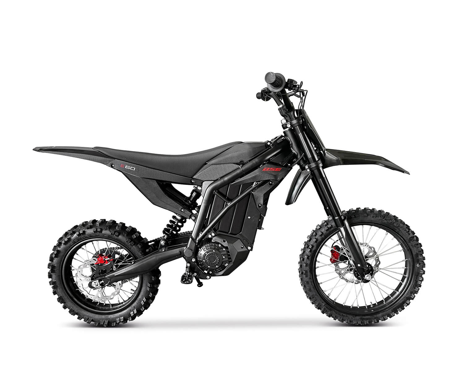 Der E60 Electric Off-Road Motorcycle is a sleek, mid-level dirt bike designed for trail riding, training, and recreational fun. Its aggressive all-black design with red accents, lightweight construction (approx. 68 kg with battery), and 820 mm seat height offer excellent maneuverability and control.